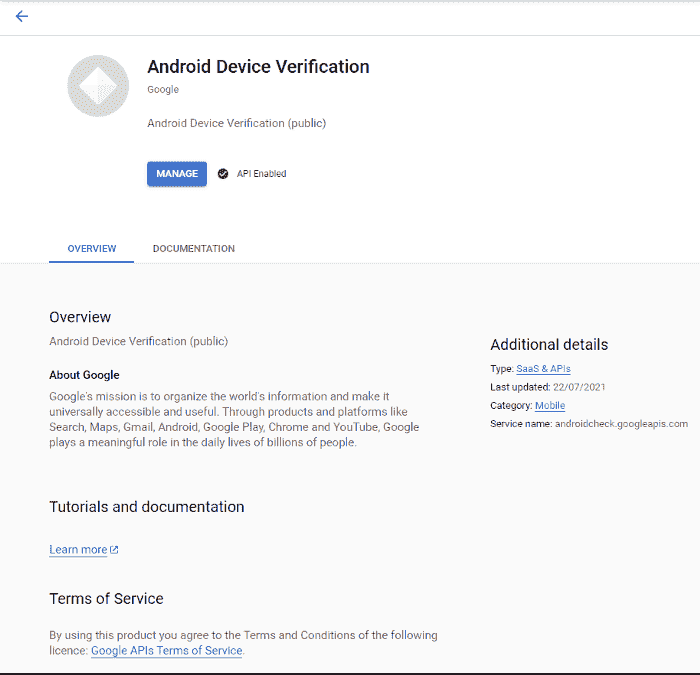 首先你需要在 GCP 创建一个项目,并激活安卓设备验证应用编程接口。然后转到平台上的凭据部分获取密钥,这将是以后向安全网络认证应用编程接口发送认证请求所必需的。
