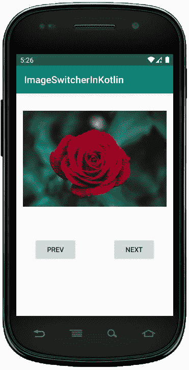 这里,我们在 Kotlin 文件中以编程方式创建 ImageSwitcher。