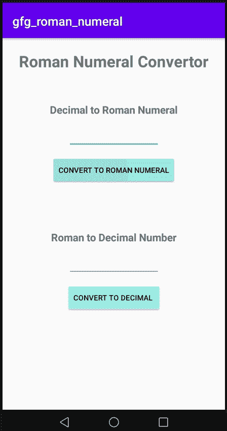 罗马数字转换器是一个应用程序,通过它我们可以在 1 到 3999 的范围内将十进制数字转换成相应的罗马数字,或者将罗马数字转换成相应的十进制数字。用户将输入一个十进制数,点击转换为罗马数字按钮,输入的数字将转换为相应的罗马数字,如果用户输入一个罗马数字,点击转换为十进制数,输入的数字将转换为相应的十进制数。在本文中,我们将在 Android Studio 中使用 Kotlin 和 XML 成为罗马数字转换器。