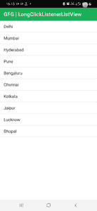 您可以看到,在长时间按下任何元素时,都会显示一条关于项目的消息。您可以自定义操作以执行任何所需的操作。