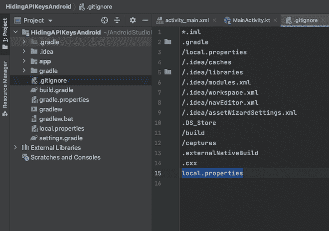 步骤 3:检查 local.properties 是否列在。gitignore 文件