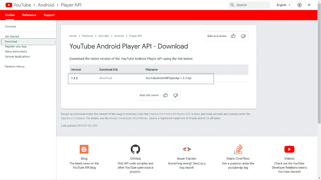 从 这里 下载添加 YouTube 安卓播放器 API。下载后解压文件,复制到安卓项目的 libs 文件夹。