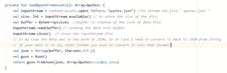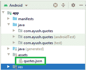 在 android 开发中,数据以文件、共享首选项和数据库的形式呈现。我们有不同格式的数据,根据我们的应用程序需要做的任务。在视频播放器或音乐播放器应用程序的情况下,我们在文件中有数据存储,如何在本文学习的安卓中读取这些文件。这里,首先我将在资产文件夹中存储一个文件(在我的例子中是 JSON 文件)。