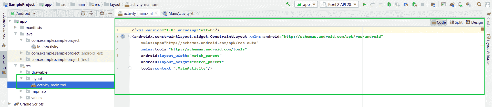 导航到应用程序> res >布局> activity_main.xml 并将下面的代码添加到该文件中。下面是 activity_main.xml 文件的代码。