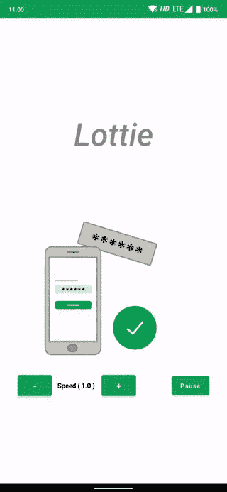 我们将建立一个简单的应用程序,显示洛蒂动画与暂停/播放和增加/减少速度按钮。下面给出了一个 GIF 示例,来了解一下我们将在本文中做什么。