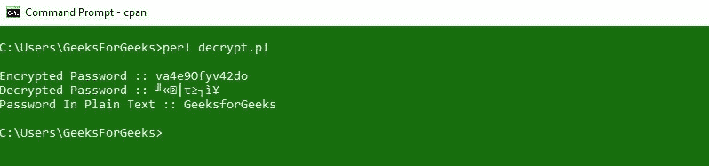 示例:下面给出的示例说明了 Perl 中的解密过程。