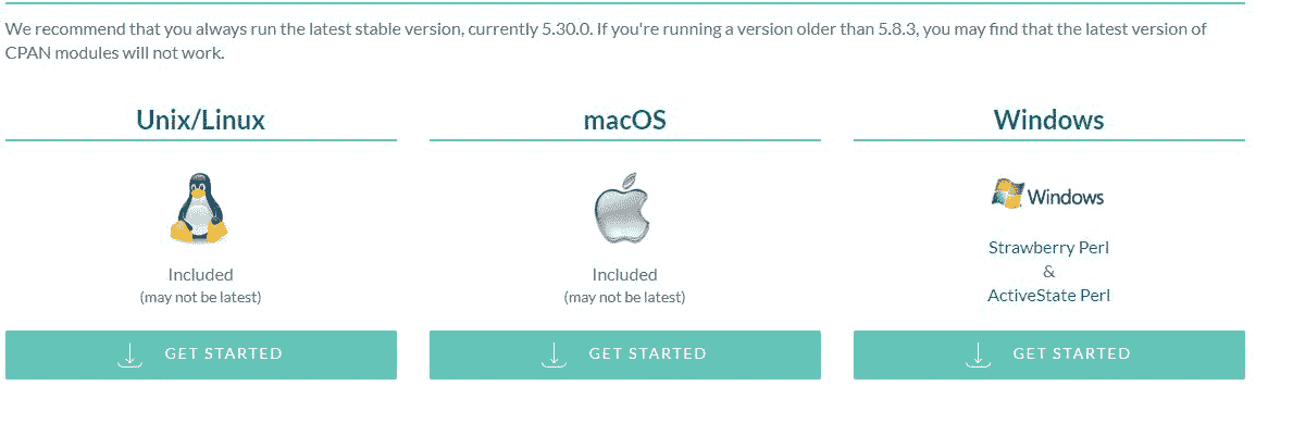 在开始安装过程之前,您需要下载它。为此,Linux 的所有 Perl 版本都可以在