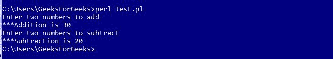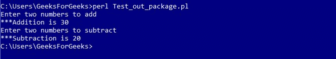 If a file accessing the package lies outside the directory then we use ‘::’ to tell the path of the module. For example, file using calculator module is outside the calculator package so we write Calculator :: Calculator to load the module, where the value on left of ‘::’ represents package name and value on the right of ‘::’ represents Perl module name. Let’s see an example to understand this: