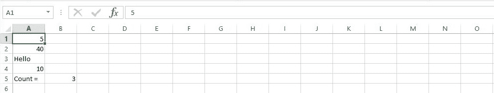 $Excelsheet->write( "A1", 5 ); $Excelsheet->write( "A2", 40 ); $Excelsheet->write( "A3", "Hello" ); $Excelsheet->write( "A4", 10 );