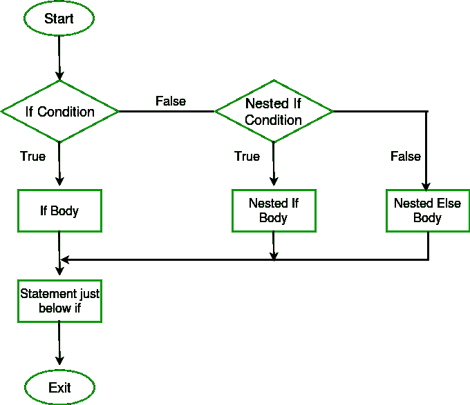 if 语句在 if 语句中被称为嵌套 if。在这种情况下,if 语句是另一个 if 或 else 语句的目标。当不止一个条件需要为真并且其中一个条件是父条件的子条件时,可以使用嵌套 if。 语法: