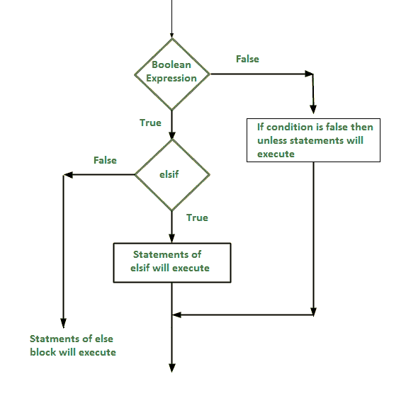 除非语句后面可以跟一个可选的 elsif…else 语句,这对于使用单个除非…elsif 语句测试各种条件非常有用。 要记住的要点: