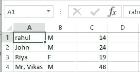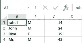 在 CSV 文件中,也可以有一些多行字段或在单词之间嵌入新行。与没有嵌入新行的其他文件相比,这种多行字段在通过 split() 函数时的工作方式非常不同。 例: