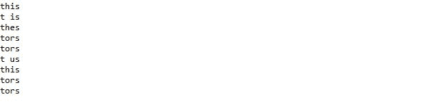 上面的模式将搜索所有以 t 开头、s 结尾、中间有两个字母/字符的单词。